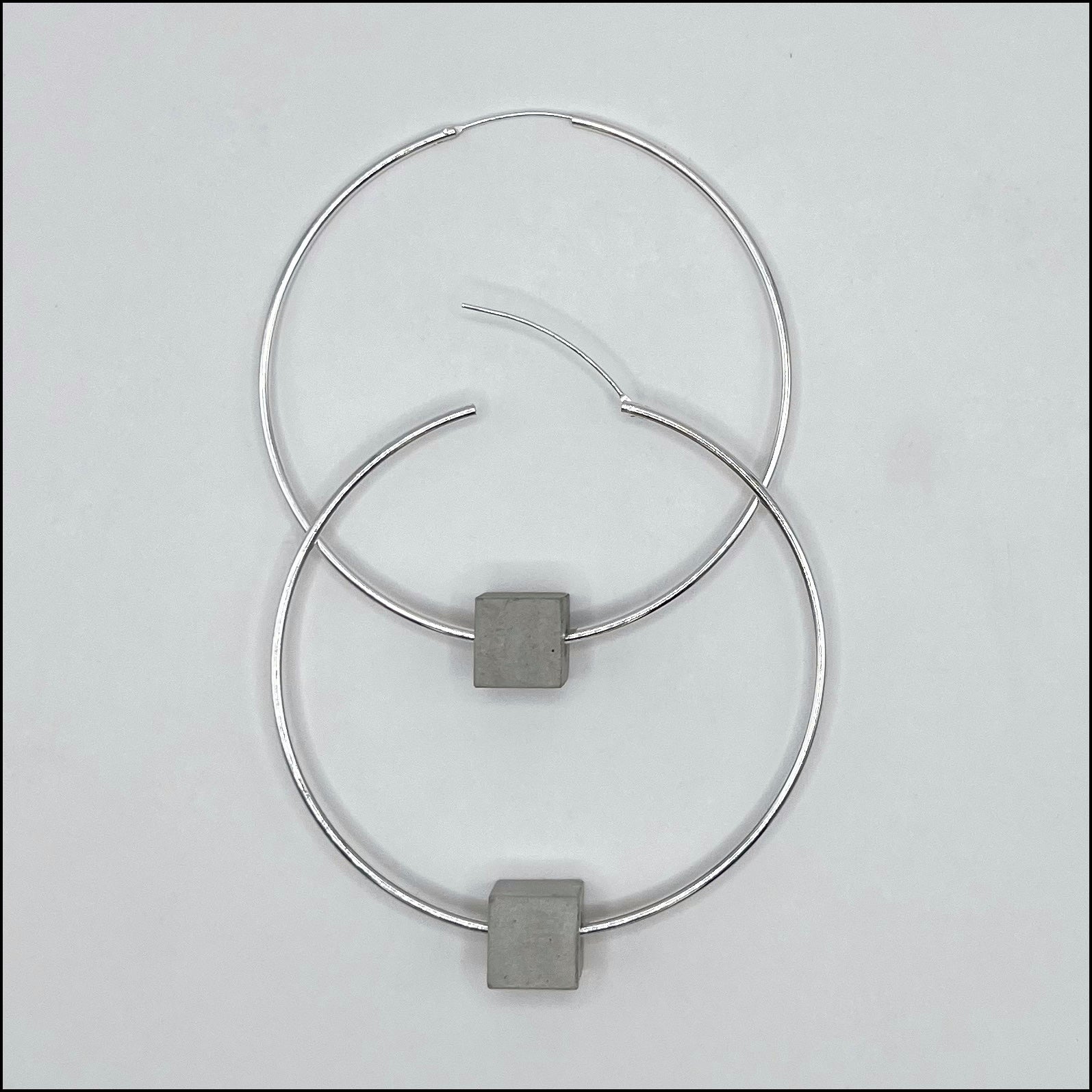 Elevate your everyday look with the Cyllene large hoops—a masterpiece of modern minimalism. Crafted from premium 925 silver, each hoop suspends a singular handmade concrete cube, creating an understated yet commanding presence.